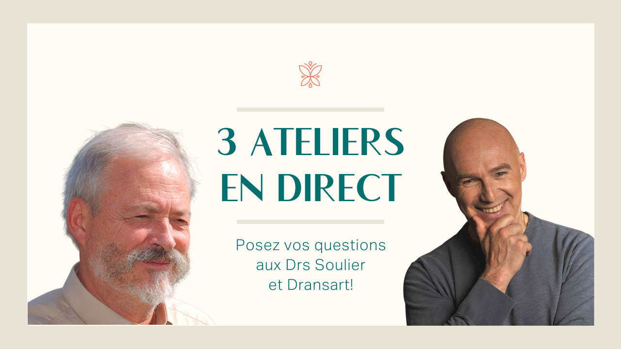 Dans cette deuxième section de questions, les Drs Soulier et Dransart développent plusieurs aspects liés aux émotions dans la maladie et mettent en avant l’importance d’être aligné(e). Ils nous amènent à voir qu’en utilisant certains sens du corps, nous pouvons répondre à beaucoup de questions. Que notre corps connaît déjà la réponse. Les Drs Soulier et Dransart abordent les sujets suivants…